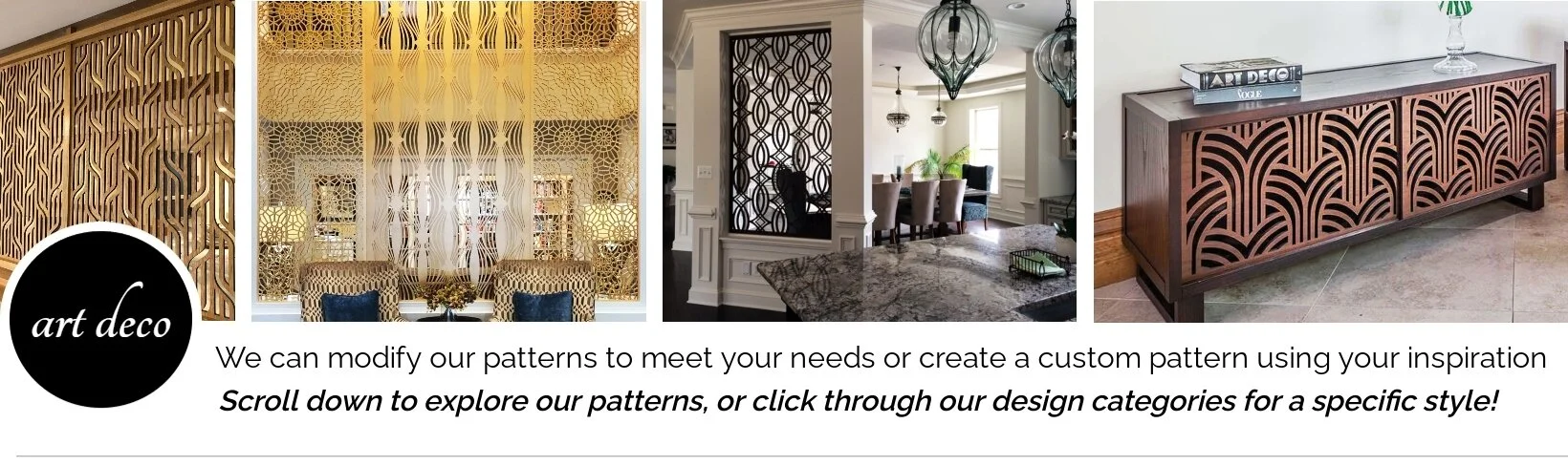 ART DECO PATTERNS IN ALPHABETICAL ORDER - the renderings below are displayed in a 4’ x 8’ panel size. Be sure to click on the pattern to view more images.
